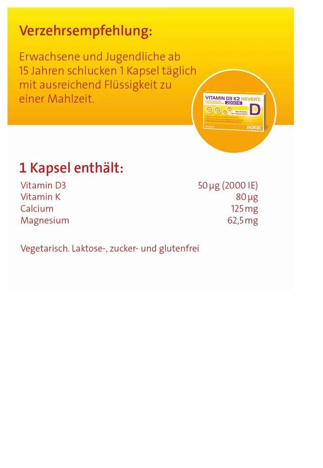 Vitamin D3 K2 Plus Calcium und Magnesium 2000IE Vit. D3 60 Stück (Hevert)